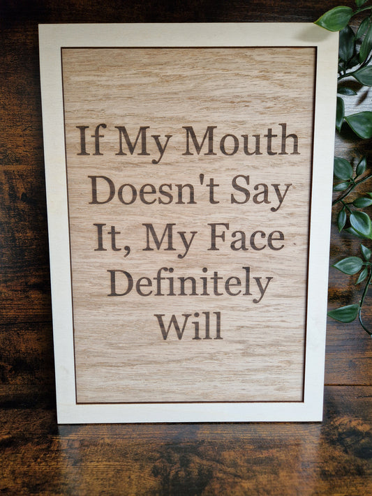 If My Mouth Doesn't Say it, My Face Definitely Will Home Decor Sign